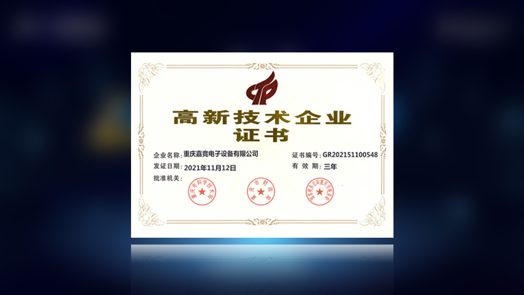 重慶嘉競電子設備有限公司獲高新技術企業證書